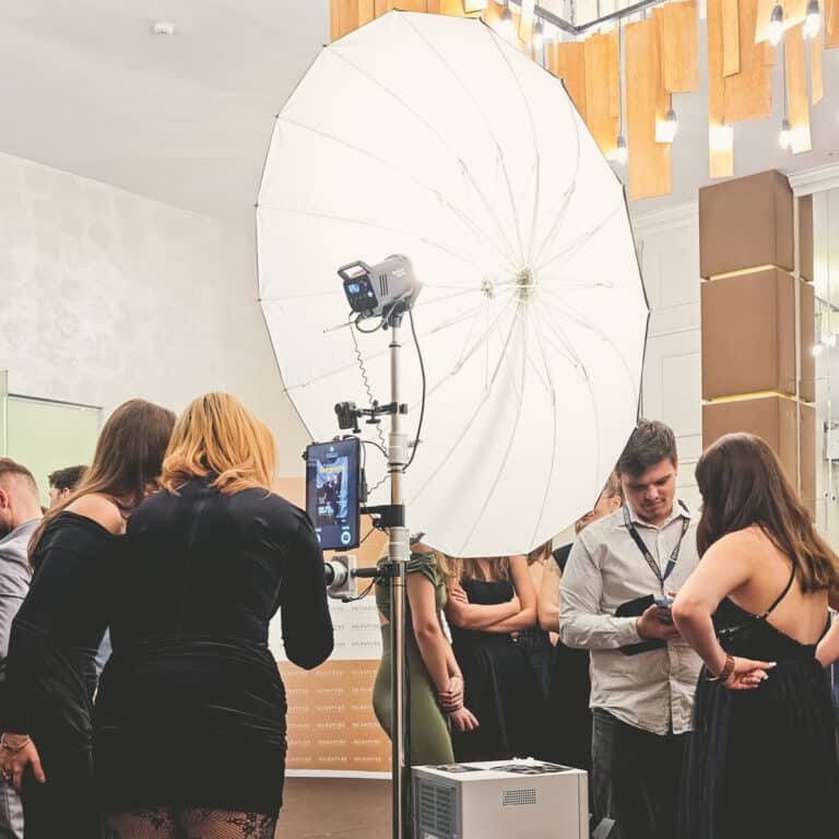 Cabina noastră foto duce mai departe experiența de studio, oferind cadre atent gândite, lumini perfecte și o integrare armonioasă în decorul evenimentului tău. Alegi fundalul – de la panouri elegante la green screen – și personalizăm fiecare detaliu, inclusiv printurile și GIF-urile. Totul este automatizat, rapid și impecabil, pentru o experiență memorabilă.